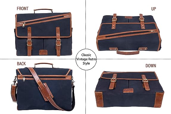 16 Inch Canvas Leather Briefcase Computer Laptop Book Large Satchel